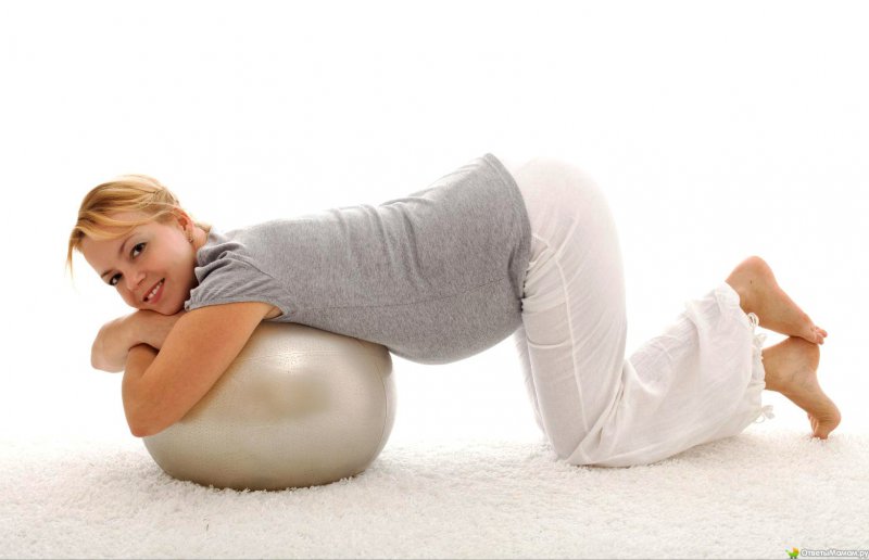 1. Сядьте на мяч, обопритесь об него руками и удерживайте равновесие. Покачивайте и вращайте тазом из стороны в сторону. Это упражнение считается одним из лучших, к тому же полезных в предстоящих родах.